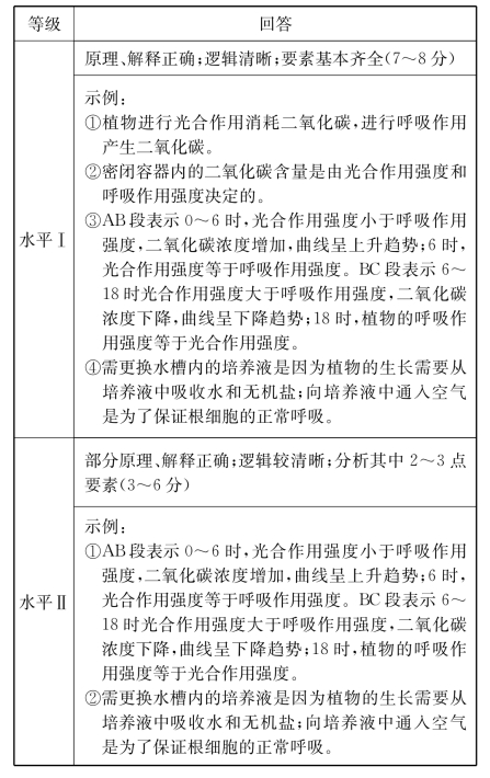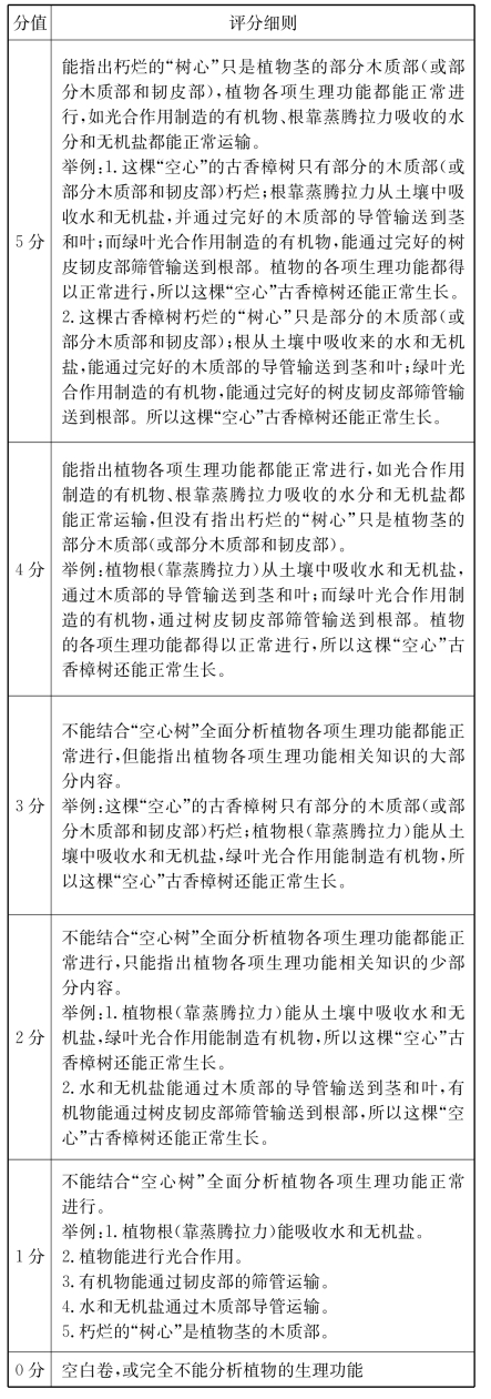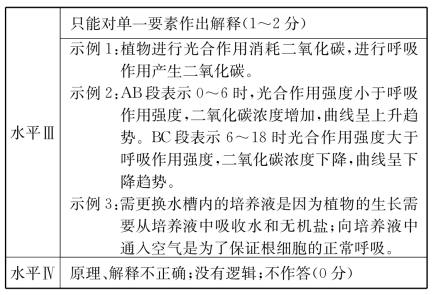 26.答题要素:“剃头”处理与蒸腾作用关系;保留土壤的目的是保护树木的根;傍晚移栽减弱蒸腾作用;“管子”确保根部呼吸作用正常进行。 满分示例:将植物“剃头”能减弱植物的蒸腾作用,减少水分的散失,保持正常生命活动。移栽时保留土壤减少了根部损伤,确保移栽后植物根能正常吸收水分,避免缺水枯萎。干燥天气在傍晚移栽并适当浇水,能够减弱植物的蒸腾作用导致的水分散失,为植物补给水分。在多雨天气插入“管子”能防止植物根部因黏土类土壤中水分过多无法正常呼吸而腐烂,“管子”也能为根部提供呼吸所需的氧气。以上的处理可大大提高移栽的成活率。