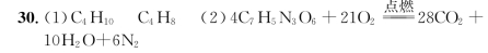 30.(1)3 (2)C2H6O (3)解:乙醇中氧元素的质量分数:O/C2H6O=16/(12×2+1×6+16)=8/23 46克乙醇中氧元素的质量:46克×8/23=16克 答:46克乙醇中氧元素的质量是16克。