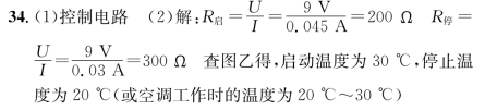 18.(1)N (2)R2(3)B (4)解:当空气湿度处于40%时,湿敏电阻R2的阻值为R2=24Ω,警示灯在闪烁过程中,发光较暗时,湿敏电阻R2与警示灯串联,因此此时