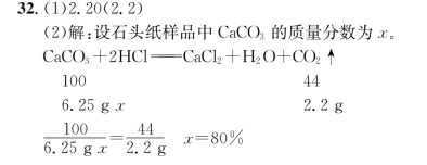 (2)解:设牙膏样品中碳酸钙的质量为xg。答:牙膏样品中碳酸钙的质量分数是50%。