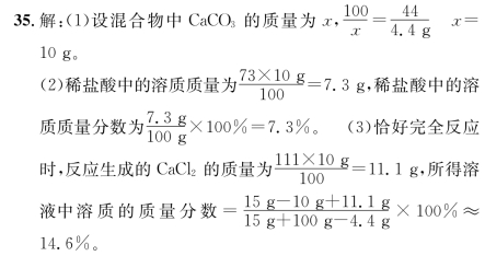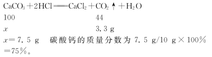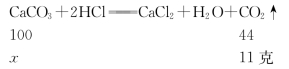 100/44=x/11克 x=25克 碳酸钙质量分数为:25克/50克×100%=50% (3)偏大