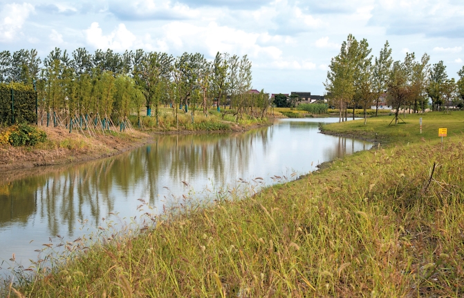 按:浏河入海处,海潮汹涌澎湃,气势壮观。更兼晨曦初露出,霞光变幻,浮金万象,为镇域一大景观。此为江畔晨景。
