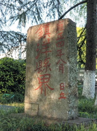 而镇洋县界碑为清雍正四年八月所立。原碑竖立于今东郊镇,现被移至新华东路东路口、太安桥西侧桥堍边。界碑系青石材质,高一百五十公分,宽八十六公分,厚二十五公分。“镇洋县界”四字为空心浅浮雕刻体,字体疑为出自工匠之手。每个字大则四十公分,小则二十公分,大小不一。右侧的“雍正四年八月 日立”也字体硕大。这块县界碑距今已近二百八十年,见证了太仓历史上行政建制的变化,并且提供了实物证据。