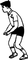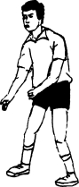 稍蹲准备姿势比半蹲准备姿势身体重心稍前,动作方法相同(图8.2.2)。