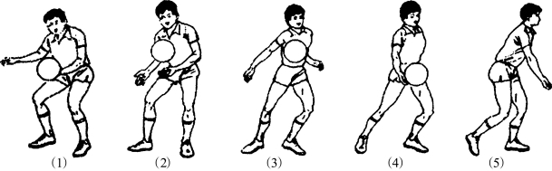 左手将球平稳地抛至腹前,高度约30厘米,离身体约一臂距离,同时右臂向后摆至身体的右侧后下方。