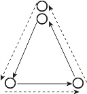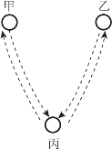 (7)三人一组站成等腰三角形,二人轮流抛球,另一人垫球。丙将甲抛的球垫给乙,乙抛的球垫给甲(图8.2.15)。