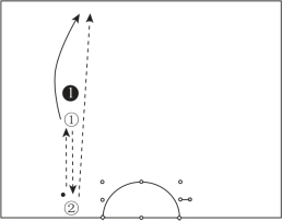 备注:①②代表进攻队员;①②代表防守队员;代表传球线路;代表跑动线路;波浪线代表运球线路。