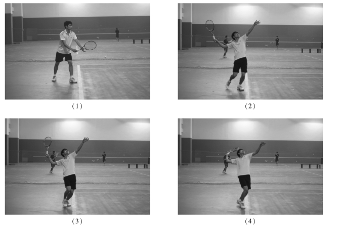 (4)侧旋球:手腕背伸,拍向外仰,由后向前方挥拍击球。
