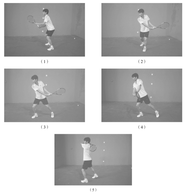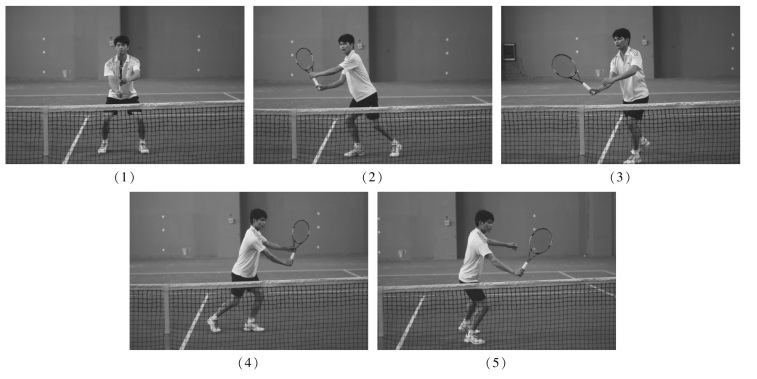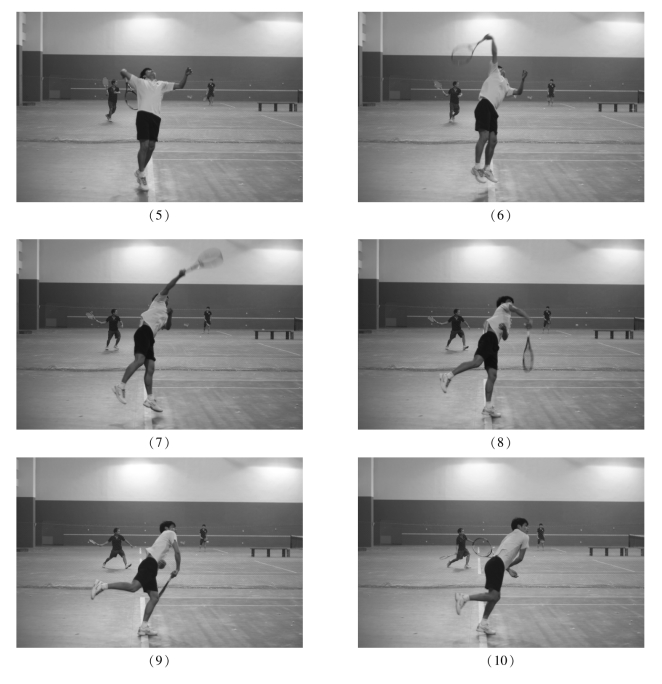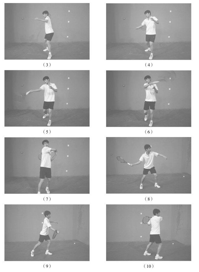 (4)击球后随挥动作很小,身体重心移动不大(图10.2.7)。