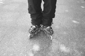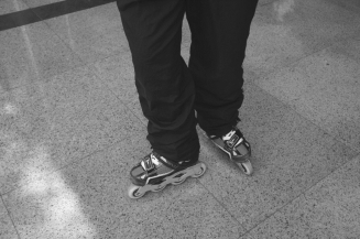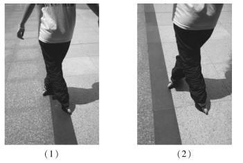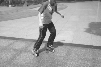 前滑中,提右脚,脚尖外转,横放在左脚后成“T”形,减速制动;后滑中,提起右脚,同时,左脚尖外转,右脚横放在左脚后成“T”形,减速制动(图13.3.10)。