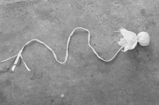 用棉布或花布制成,直径5~6厘米,内装细沙或竹豆,重150克,球心穿系一条长90厘米,尾端系3片长4厘米,宽2厘米的布条绳子,即为比赛用绣球,比赛时需备5种不同颜色的绣球各3只(图23.2.6)。