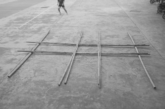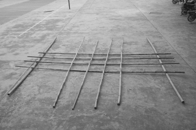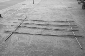 (1)四竿交叉法:底竿不动,四条小竿横摆,另四条竿竖摆(图25.2.2)。