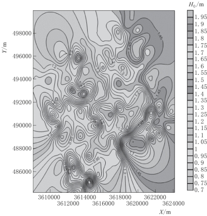 图0-2 叶甸工区表层结构调查的覆盖层厚度H0等值图