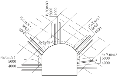 其内容包括:①土木工程施工过程中的物理探测,如隧洞洞周和开挖面前方隐伏不良地质现象的探测,围岩松弛带的探测(图0-6);②施工影响的检测,如大坝坝基开挖和边坡开挖中爆破对岩体影响的探测;③施工质量的检验,如大坝混凝土强度的检测,桩基质量检测,地基加固处理效果的检测,灌浆质量的检测等,主要采用地震测试、声波测试和测井等方法。