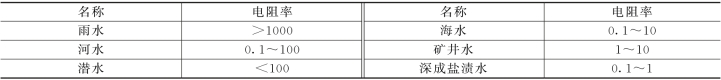 表1-2 几种天然水的电阻率 单位:Ω·m