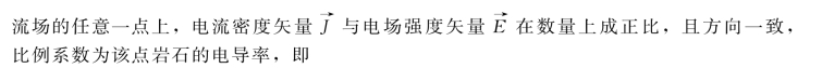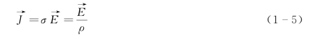 这便是稳定电流场中的欧姆定律。这个公式既适用均匀介质,也适用于非均匀介质。因为在介质不均匀的情况下,我们总能选取一个足够小的体积元,将其电阻率看作是均匀的。式(1-5)又称为欧姆定律的微分形式。