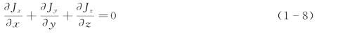 综上所述,若将欧姆定律的微分形式及电位梯度的表达式代入电流密度连续方程式(1-8)中,则由于