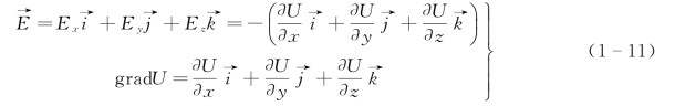 式(1-9)说明空间某点的电场强度等于电位的负梯度。在极坐标系中,式(1-9)可写成