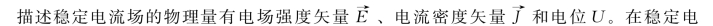 从稳定电流场的上述性质可知,电流在空间的分布是稳定的,即不随时间而变化,它和静电场一样是一种势场。场内任一点(除场源外)的电位U与场强有如下关系: