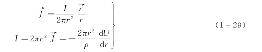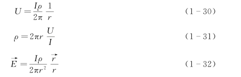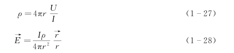 式(1-26)是均匀各向同性无限介质中,点电流源电场的电位分布公式。据此,可以写出电阻率和电场强度公式