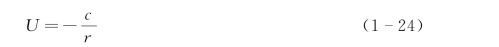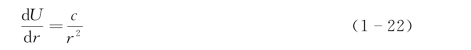 c和c1都是积分常数。根据边界条件式(1-14),当r→∞时,U→0,故c1应为零,于是