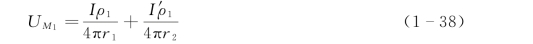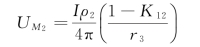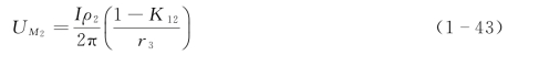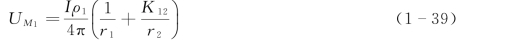 由于引入虚电源I'来代替ρ1和ρ2分界面的影响,认为M1点的电位是在充满ρ1介质的均匀全空间中由I和I'共同产生的,从而把全空间存在电阻率分界面的问题,简化为只有ρ1的均匀空间存在两个点电源的问题。