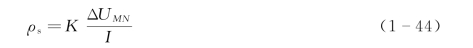 式中:K为装置系数,由式(1-36)确定,无论地面是否起伏不平,AM、AN、BM和BN等分别表示A、B和M、N间的水平距离。