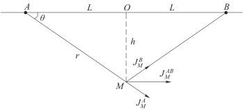 图1-10 均匀各向同性介质地面上两个点电流源的电流密度分布