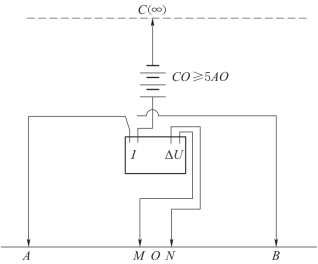 (3)“无穷远”极(C)的距离。为了使C极在M、N极间产生的电位差小于A或B极产生的电位差的5%,以便将其影响忽略不计,必须将C极置于垂直测线的方向上,并使CO≥5AO。