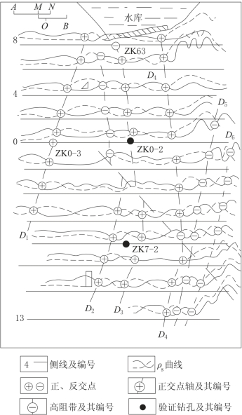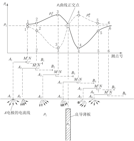 图2-7 直立良导薄板上的联合剖面ρs曲线