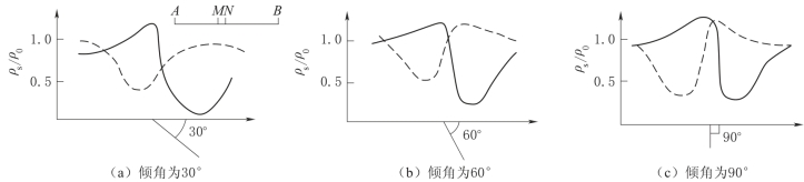 图2-10 不同倾角良导厚板上的联合剖面曲线