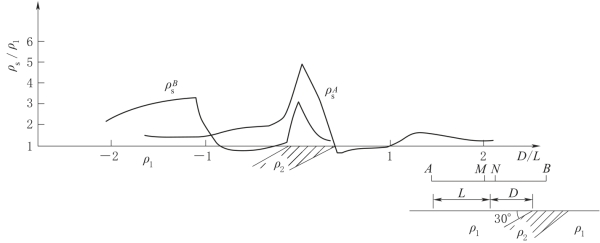 1.联合剖面法过陡立接触面时的ρs剖面曲线