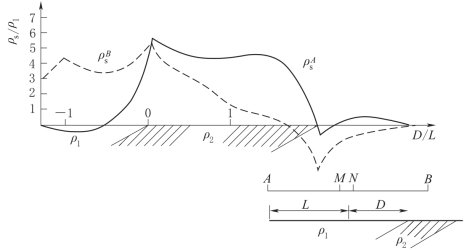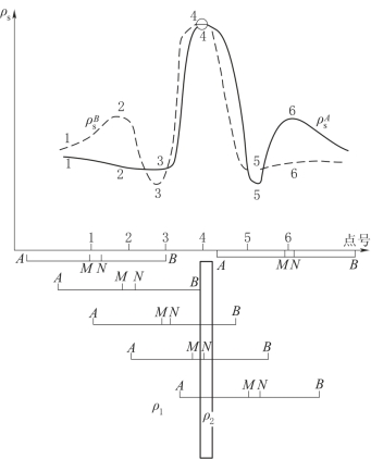 曲线的变化特征。如图2-4所示,设ρ1>ρ2,无覆盖层,且MN→0,整个装置由左向右移动。