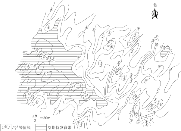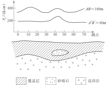 图2-25 用复合对称四极剖面法了解基岩起伏