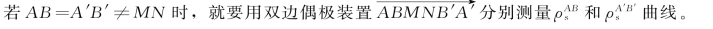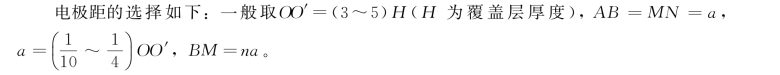 偶极剖面法是在一剖面线的两边分别排列供电电极A、B和测量电极M、N,一般采用轴向排列(图2-32)。A、B的距离与M、N的距离相等或相近,AB的中点O与MN的中点O'的距离OO'称为电极距,由于OO'大于AB许多倍,所以从观测点上看,由供电电极A、B产生的电场是一电偶极子电场。偶极剖面法的名称由此而来。