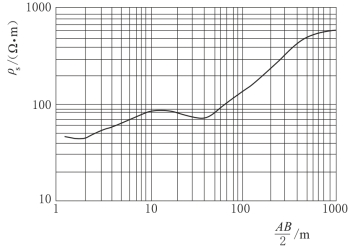 为了用电测深法解决上述地质问题,在实际工作中,常根据地质任务和测区地质资料,选择一个电性标准层,以便于进行区域追索、对比,获得地下构造的完整概念。这个标准层应该在测区内普遍存在,分布连续,厚度较大(大于或等于其埋深),电阻率稳定而且与围岩的电阻率有较大差异(最好差10~20倍或以上)。满足这些条件的电性标准层在各测深点的曲线上将有明显反映,可以把它作为电性层对比的标准。在工程物探实践中,常把前震旦系古老的结晶基底,某些变质岩、岩浆岩、石灰岩视为高阻标准层;把第三系、白垩系的泥岩、页岩以及黏土岩作为低阻标准层。
