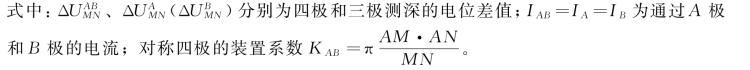 这就证明了对称四极测深和三极测深所得到的ρs曲线完全相同。但当地层不水平,布极方向不平行岩层走向时,两者就不相同了。
