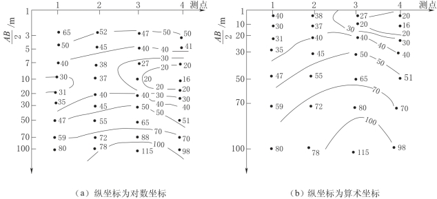 图2-54 等ρs断面图的绘制(单位:Ω·m)