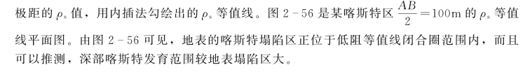 图2-56 某喀斯特区等的ρs平面等值线图(单位:Ω·m)