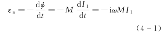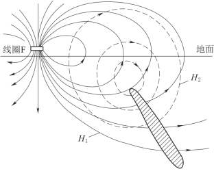 将音频(几十到几千赫兹)的交变电流I1=I10eiωt送入发射线圈F中(图4-1)时,在其周围空间建立了一次交变磁场H1=H10eiωt。则在地下良导体中形成的感应电动势式为