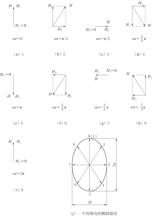 1~9—一个周期内不同时刻的一次场与二次场以及由它们合成的总场