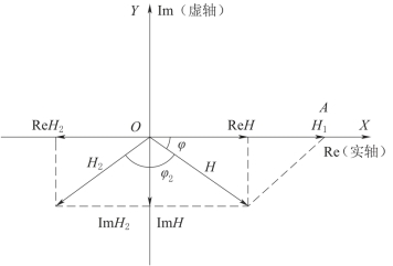 一次场H1只有实分量,H1=H10sinωt。二次场H2=H20sin(ωt+φ2)与一次场有相位差φ2,故
