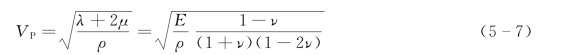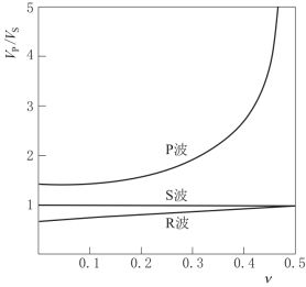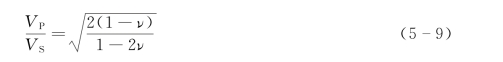 由式(5-9)可见,已知泊松比可确定速度比。反之,在取得岩石的纵波和横波速度之后,便可求得泊松比ν,进而还可能求出杨氏模量E、体变模量K及剪切模量μ。这些相当有用的弹性参数是分辨岩性和岩体各向异性的基本参数,所以说纵横波联合勘探是岩性地震勘探的基础。