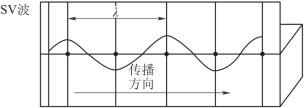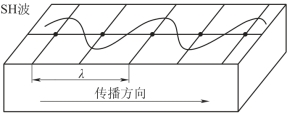 (2)横波质点振动方向与传播方向垂直。如果质点振动在波传播方向的铅垂面内,这种横波称为SV波,如图5-3所示。如果质点振动在波传播方向的水平面内,这种横波称为SH波,如图5-4所示。