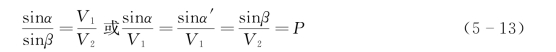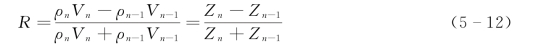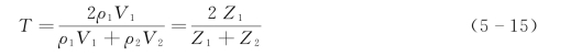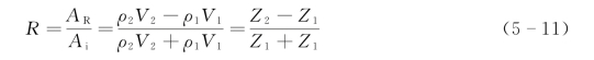 式(5-11)中,Z1=ρ1V1,Z2=ρ2V2,表示界面上下两种介质的波阻抗。