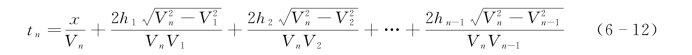 对于多层介质的情况,只要满足向地下深处各层速度逐层递增的条件,就可以形成折射,即只要满足V1<V2<V3<…<Vn的关系,存在n-1个界面时其折射波时距方程为