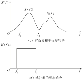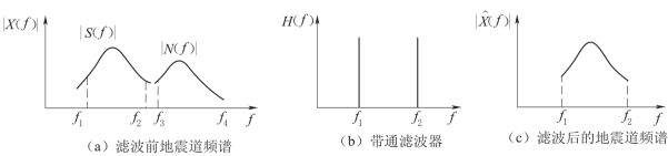通过上述运算消去了干扰波,保留了有效波。上面地震波的频谱是较典型的。一般干扰波的频谱N(f)与有效波S(f)并不完全分离,但可以近似地看作分离,只要设计出合适的频率响应函数H(f),通过滤波也可以达到提高信噪比的目的。