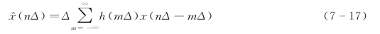式(7-17)中求和号前面的Δ是一个常数。我们可以省略去,略去后滤波结果相差一个常系数,对滤波后信号频谱的相对关系无影响。为了方便,可以把式(7-17)简化为