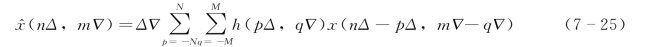 其滤波过程如图7-12所示。在实际运算时,需把式(7-23)改写成离散化的二维数字滤波公式: