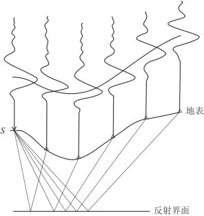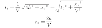 无论是单次的反射波时距曲线还是共深度点的时距曲线都是一条双曲线(图7-13和图7-14)。